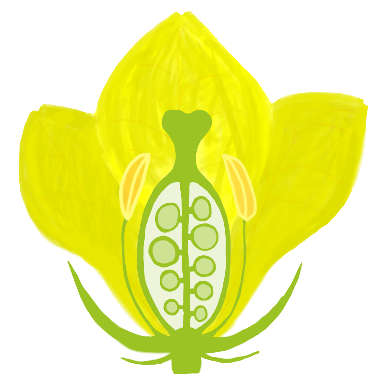 子房を花の花弁の部分のことで、花びらの役割を果たしている。