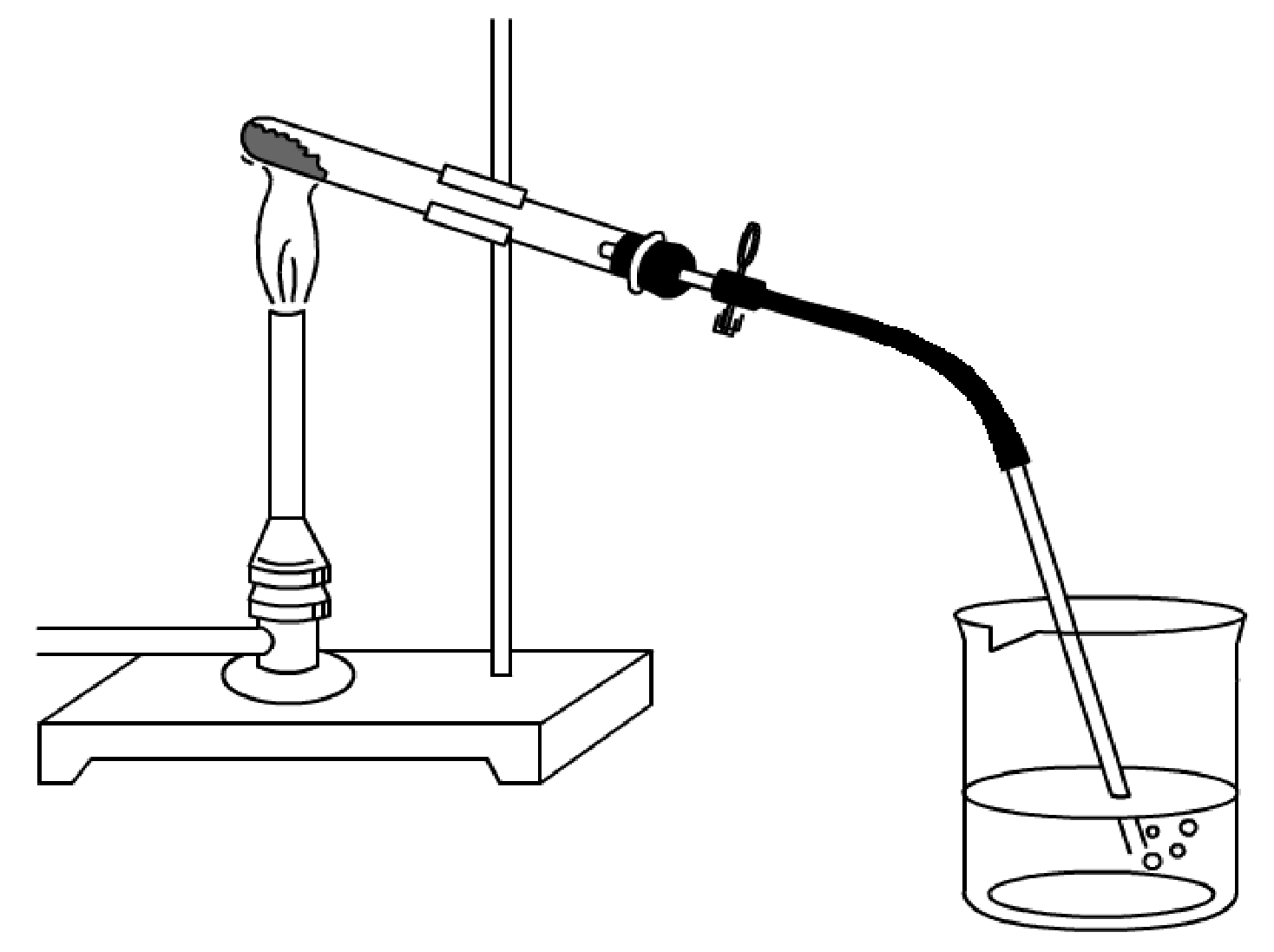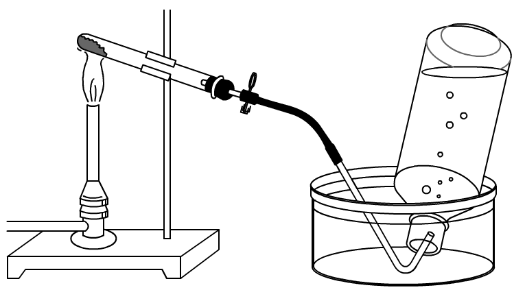 気体の発生がとまったところで、ガラス管を水から出して消火。